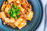 ③ふきんの上に①を置いてフライパンにふたをし、強めの中火で10~15分間、蒸す。梅干しを崩しながら食べる