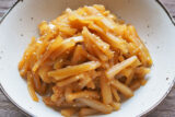 ③フライパンに植物油を中火で熱し、①の鶏肉の皮、身の順に約5分間焼いて、両面に焼き色をつける。にんにく、②の大根を加え、肉のうまみをすわせながら炒める