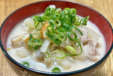 ⑤③に④を入れてひと煮立ちさせ、長いもを加えて全体に混ぜ合わせ、器に盛り、長ねぎの青い部分をのせ、切りごまをふれば出来上がり