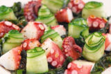 ③器にワカメ、真ダコを盛り付け、キュウリを丸めてのせる