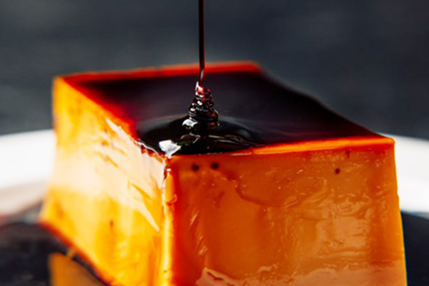 人気の秘密は甘さ控えめなプリンにたっぷりかかった香ばしくてほろ苦いカラメルソース。