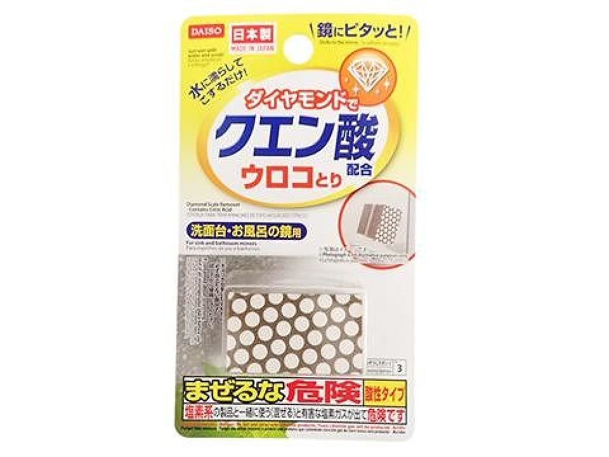 そんな頑固な水アカにおすすめなのがダイソーの「ダイヤモンドウロコ取り(クエン酸配合)」スポンジ。