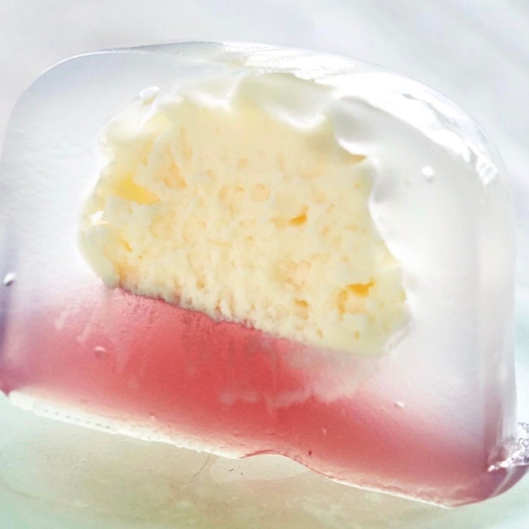 型の中にフランボワーズ・シャインマスカットなど厳選された旬のフルーツを入れ、白ワイン風味のジュレで閉じ込めた宝石のような見た目の逸品です。