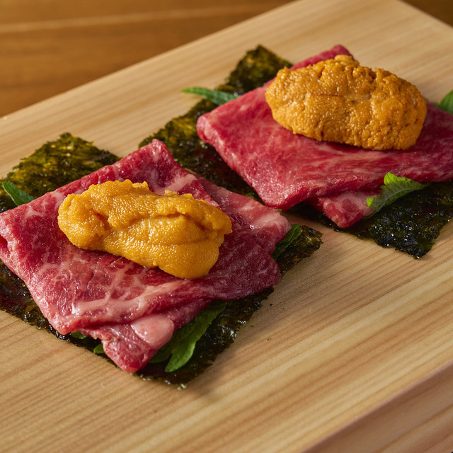 お肉の上にウニがのった「雲丹ユッケドッグ 7500円~」など珍しいメニューもあります。