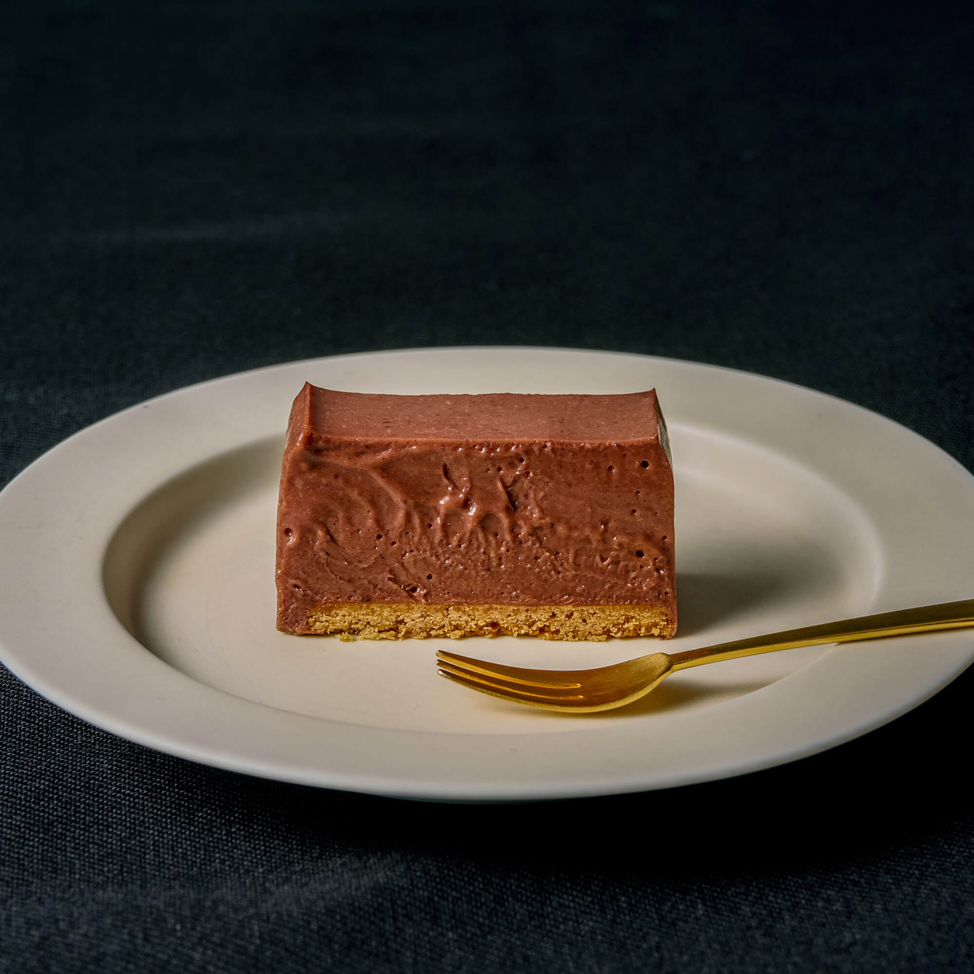 季節で変わるフレーバー&ふわふわムースが特徴で、外はパリっと中はふわっとした食感のチョコレートケーキです。