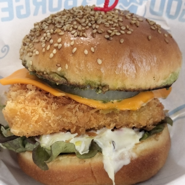 新鮮な真鯛を使ったフィッシュバーガー「真鯛のジェノベーゼバーガー」です。