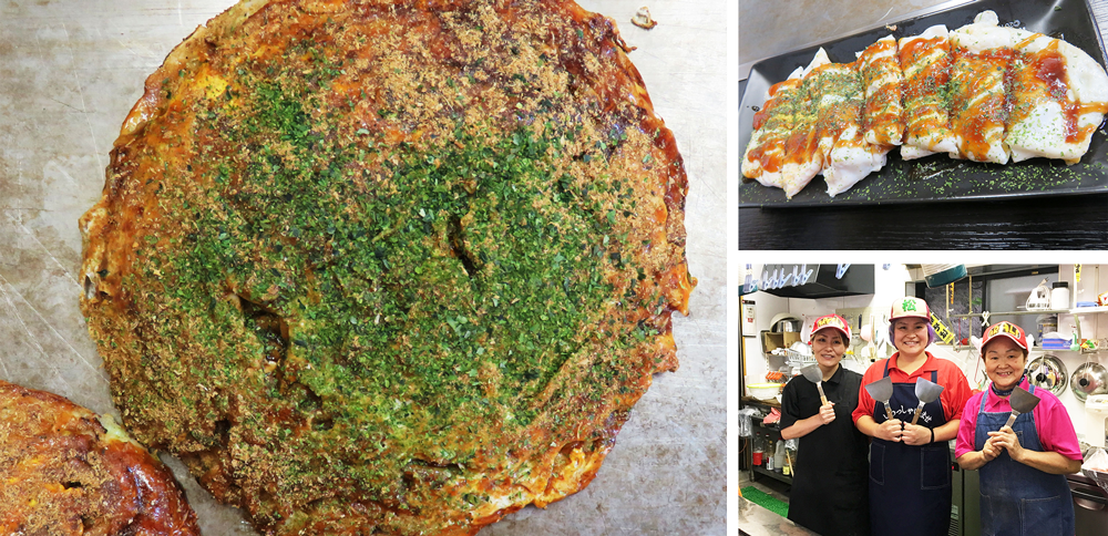 中でも鉄板焼きりんごは何枚でも食べられる超ライトなあっさり系のお好み焼きを追求。