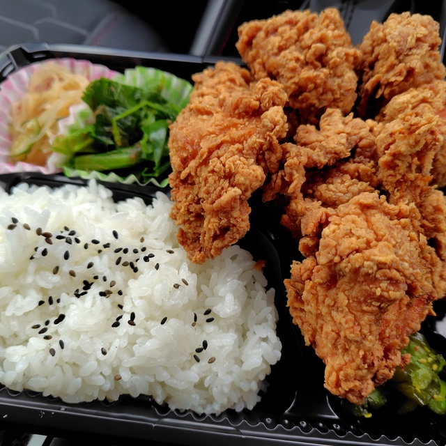 毎週日曜日に日本最大級の朝市が開かれ、全長800mに約300店の屋台が並ぶ「館鼻岸壁朝市」で有名な館鼻漁港内にある唐揚げ店。