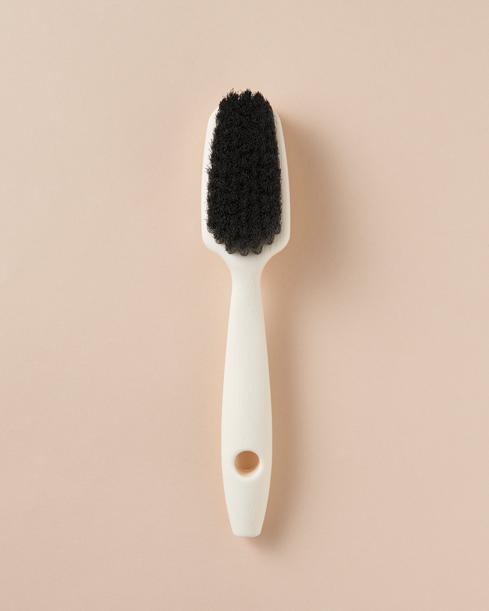 袖の汚れが目立つダウンジャケットもプレウォッシュ液(液体洗剤と水を1:1の割合)を吹きかけ、洗濯ブラシで叩いて汚れを浮かせてから洗うことで自宅の洗濯でもキレイに仕上がります。