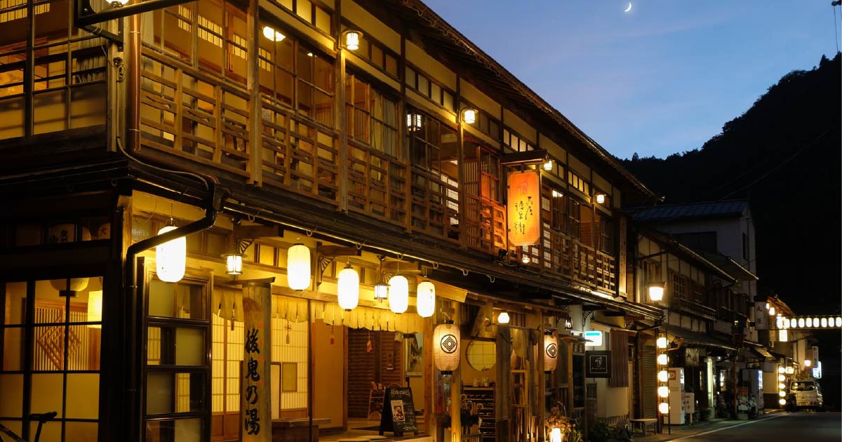 温泉街は夜になるとより一層ノスタルジックな雰囲気になります。