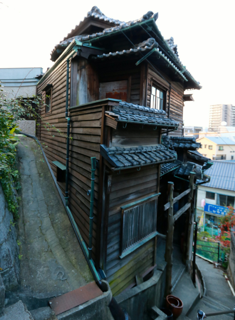 坂の途中にあるわずか10坪の土地に石垣を積んで建てられています。