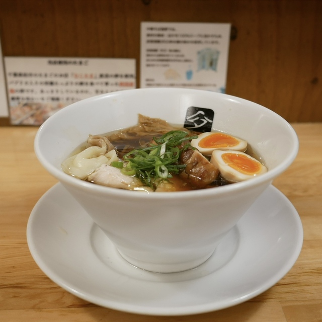 看板メニューの「白だしラーメン 900円」は煮干し・昆布・鰹節の旨みが効いた透明なスープに、自家製ちぢれ麺がよく絡む上品かつ飽きのこない一杯。