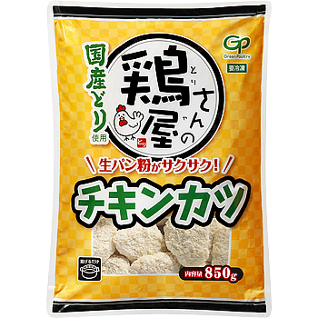 国産鶏のむね肉と、このチキンカツのためにパン職人が作った自家製生パン粉を使用した冷凍食品です。