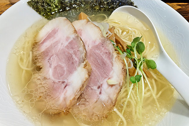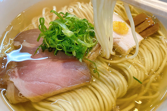 こだわりの麺に合わせるのは高知県産柚子の皮と焼津産かつお節のエキスを使用したというスープ、酸味と燻した香りが絶妙なアクセントに。
