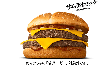 大人も満足するバーガーをテーマに展開する「サムライマック」シリーズのひとつで、2枚重ねた100%肉厚ビーフパティと炙り醤油風のソースがやみつきになるんだとか。