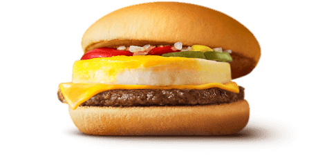 甘いパンケーキ生地のバンズにタマゴ・パティ・チーズを挟んだ朝マック限定の人気バーガーです。