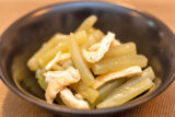 ふきは下ゆでしてアクを抜き、しっかり筋を除いて口当たりをよくします。