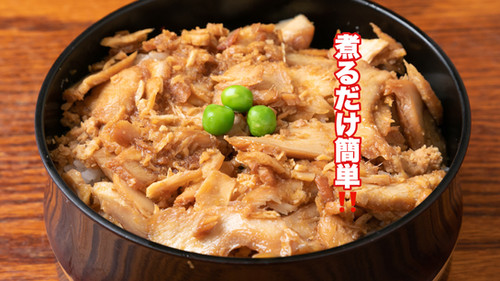 ご飯の上に甘めに仕上げた鶏そぼろをふんだんにかけ、煮込んだ鶏肉を豪快に盛り付け、鶏肉を煮込んだ旨味たっぷりな秘伝の醤油ダレを回しかけてグリーンピースをのせれば完成。