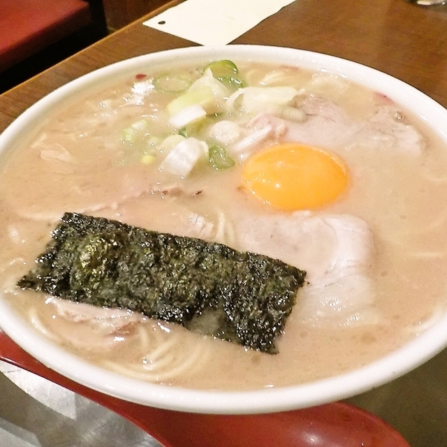 熊本ラーメンの特徴である豚骨スープ×マー油の濃厚ラーメンで、麺はスープにしっかり絡むよう中太ストレート麺を使用しています。