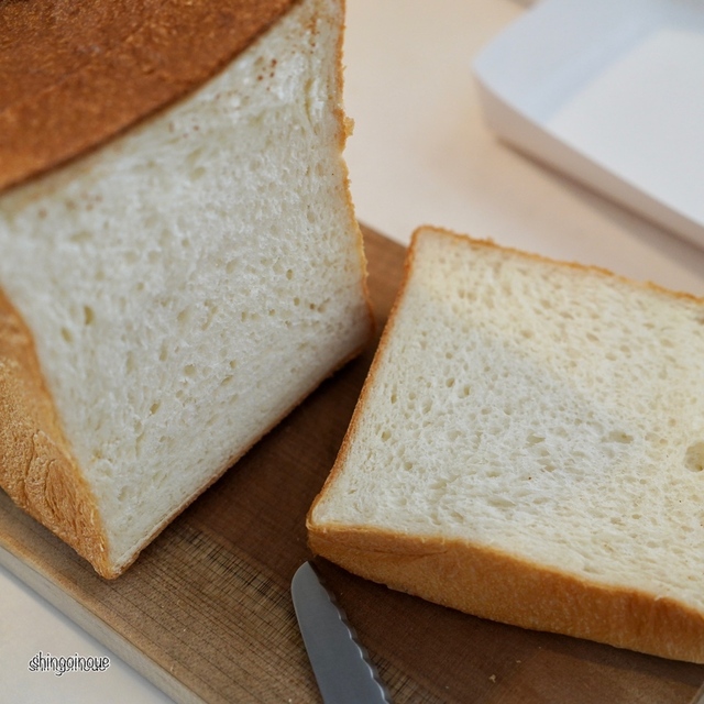 角食パンはパリパリ食感の山食パンに比べてしっとりしているのが特徴。