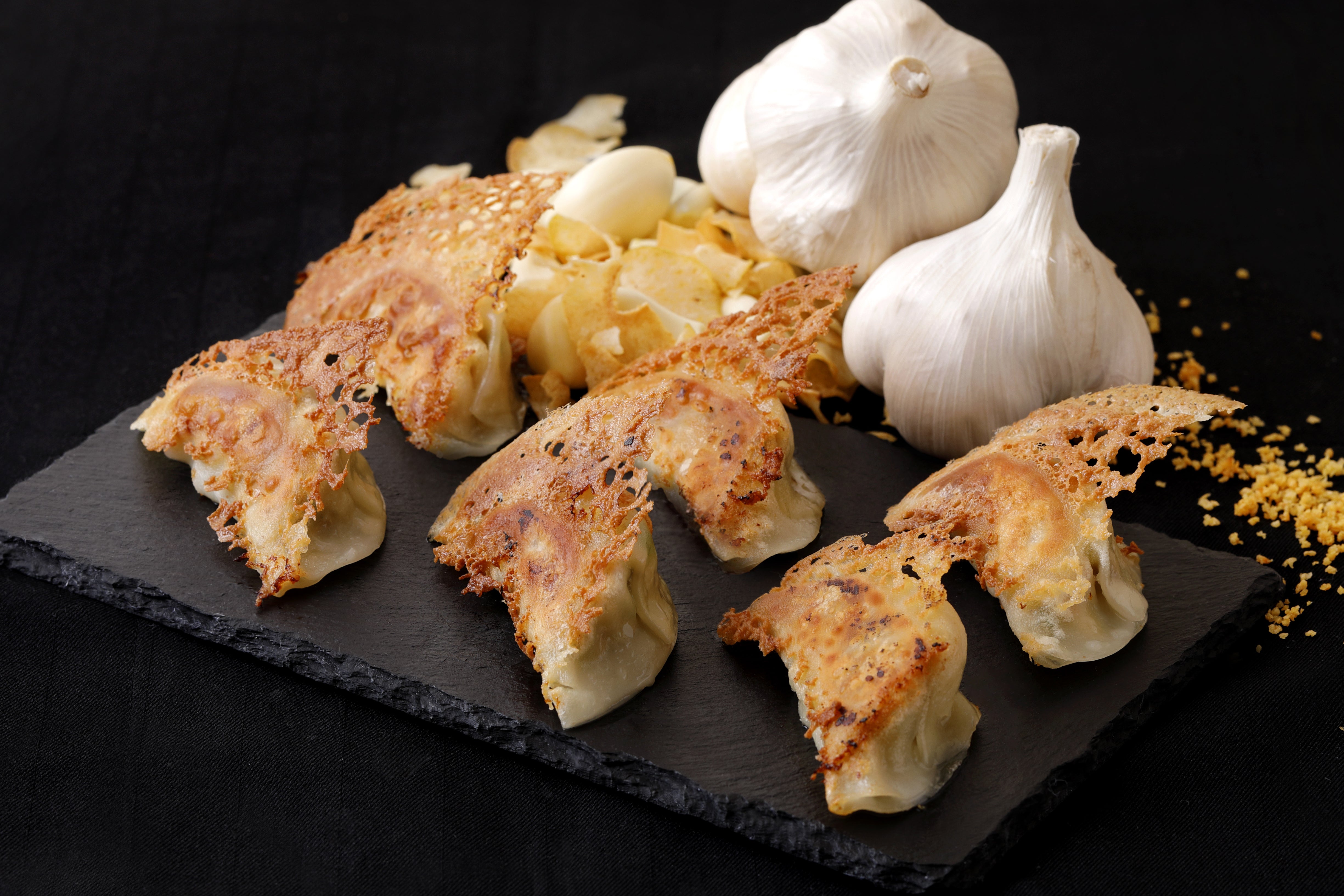 さらにニンニクや玉ねぎなど香味野菜のスープで蒸し、多めの油で焼き揚げにしたカリカリ食感の絶品餃子です。