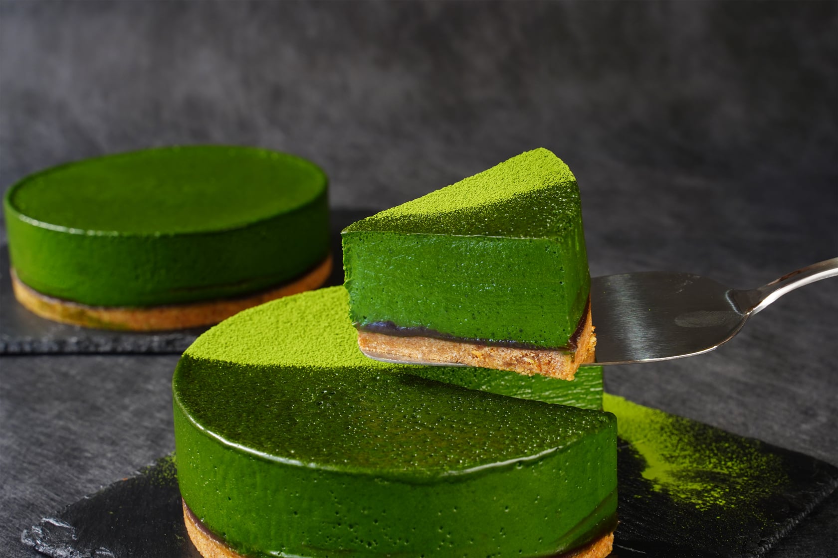 仕上げに超高級抹茶「宝喜の極 金」をさらに贅沢にふりかけた、最高級宇治産の抹茶をふんだんに使用した極上の濃厚抹茶タルトケーキです。
