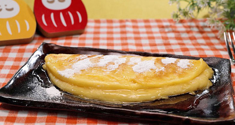 ④フライパンにバターを溶かし、③を入れてフタをして弱火で5分焼く。生地に焦げ目ができ表面に気泡が出たら半分に折りたたむ